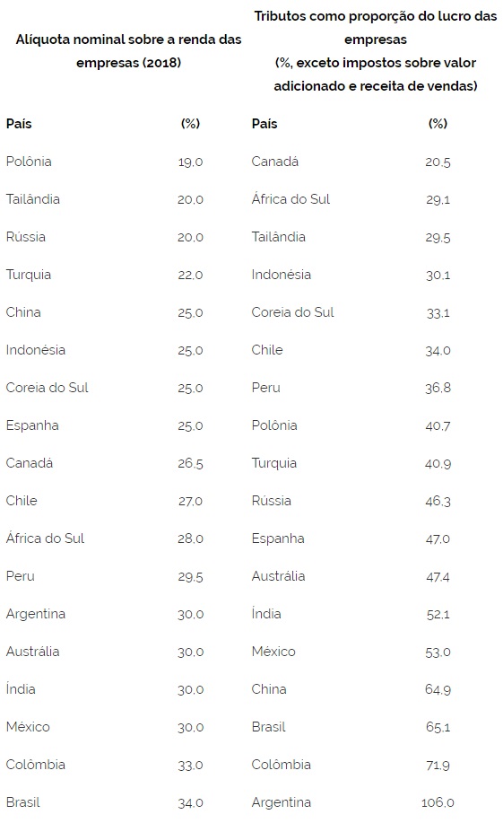 A tributação sobre a renda das empresas brasileiras é uma das mais elevadas do mundo, segundo levantamento da Confederação Nacional da Indústria (CNI). Segundo a